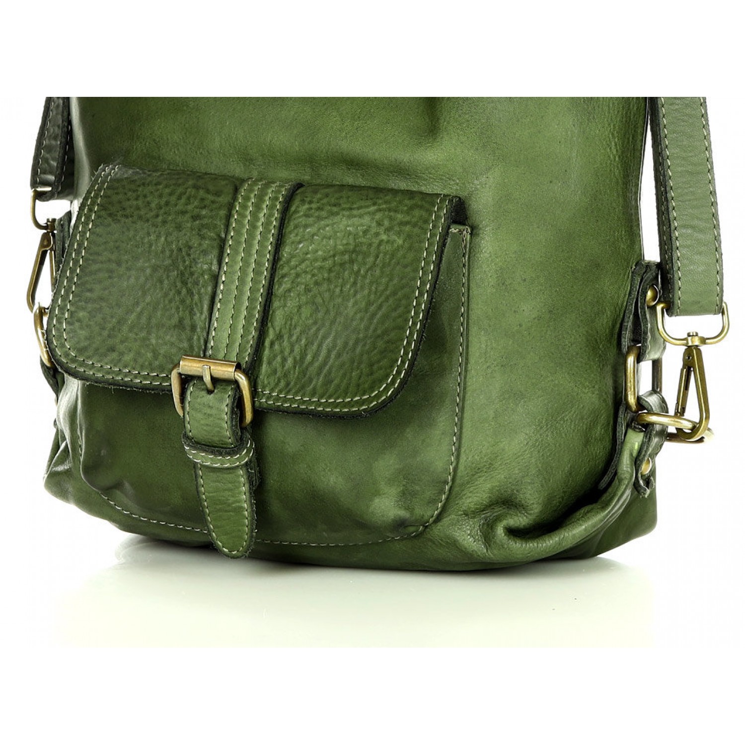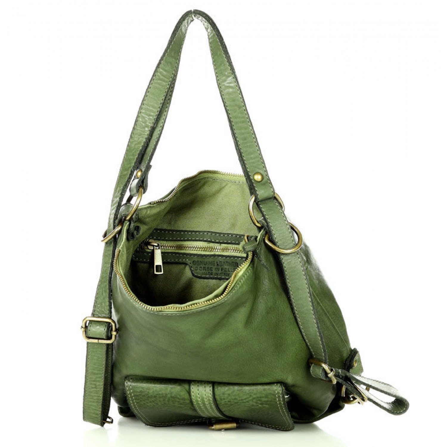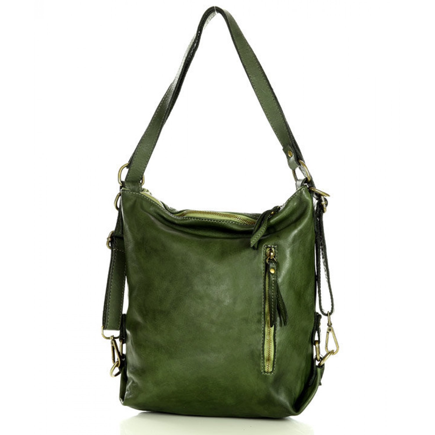 Fait-main sac à dos bandoulière 2 en 1 vert cuir femme. Sac à dos urbain - quotidien vintage cuir véritable souple italien