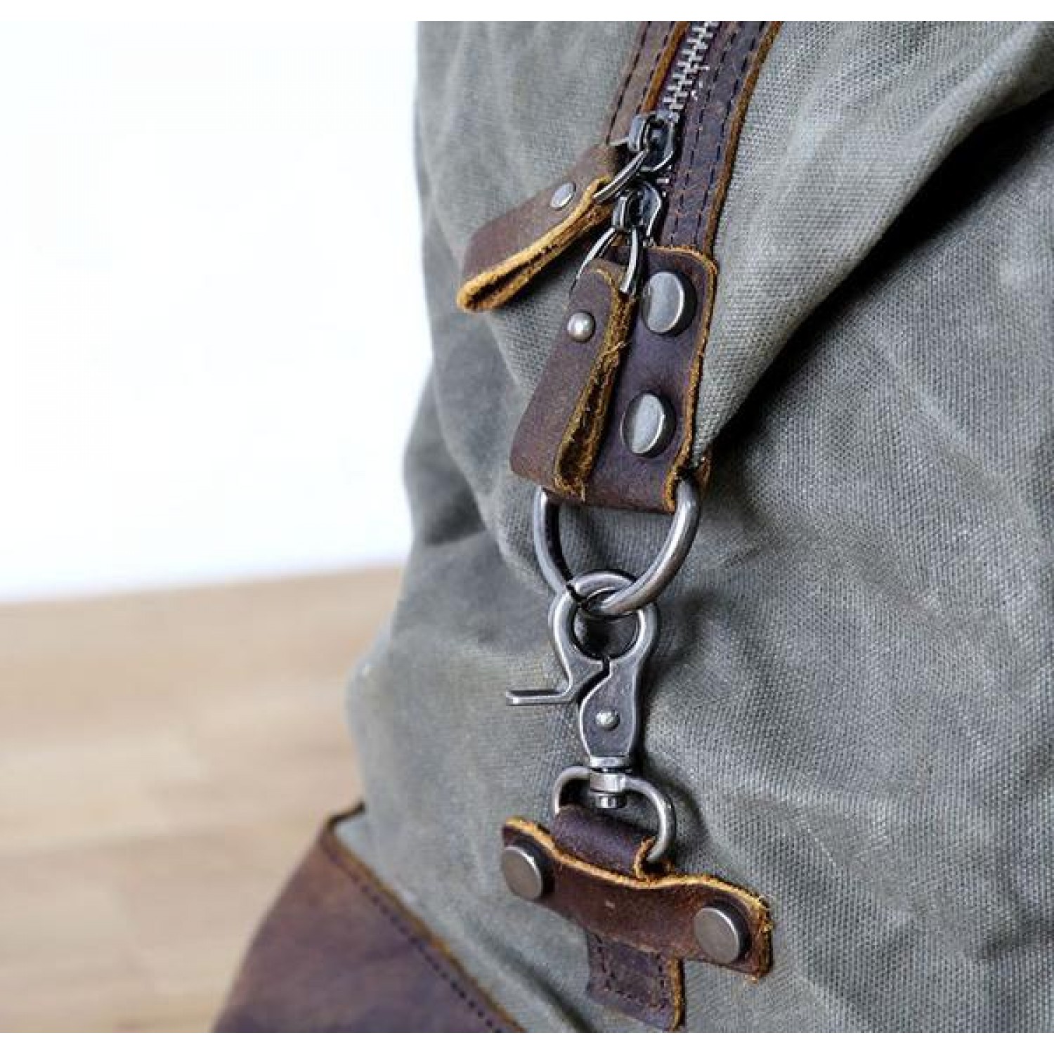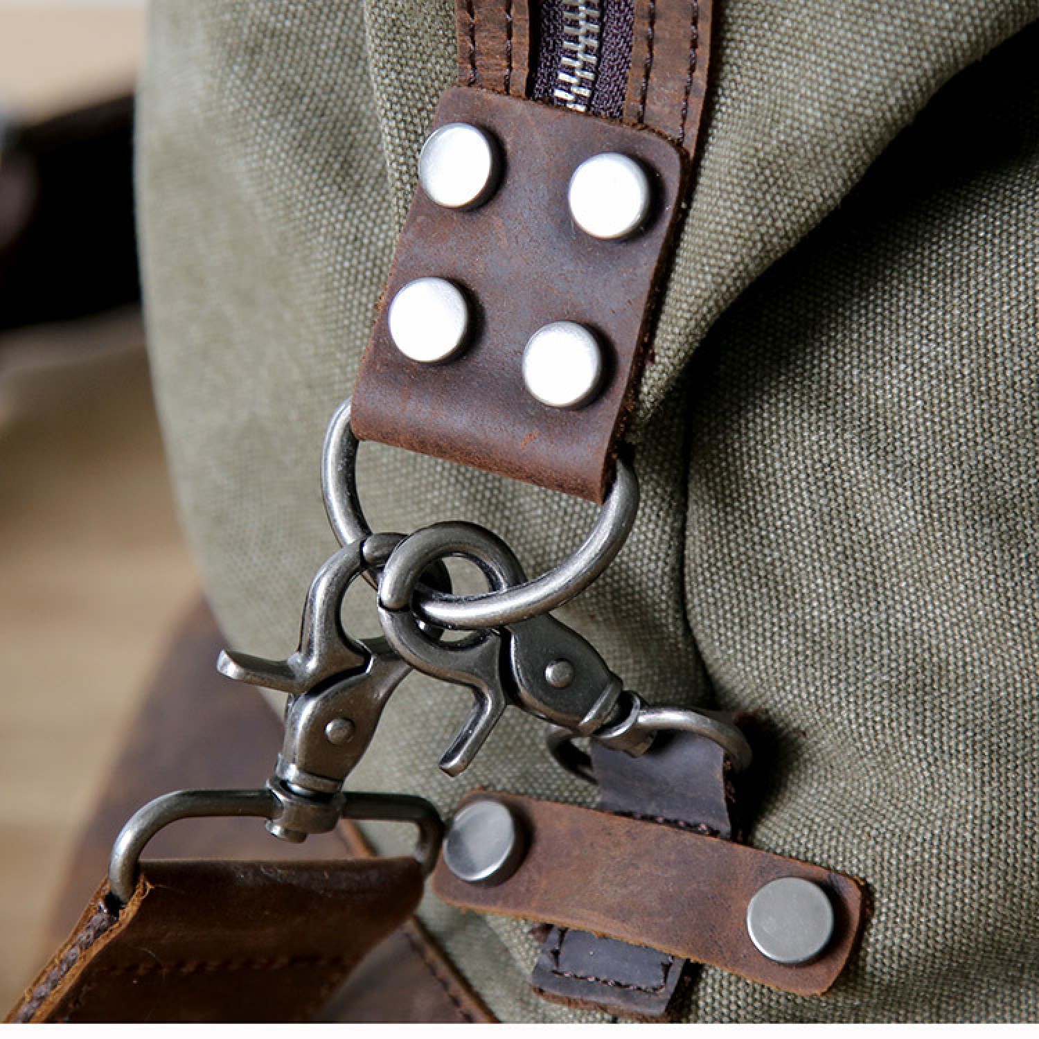 ☑️ Matériau extérieur : Waxed toile cirée épaisse 22 oz et cuir de vachette véritable vintage